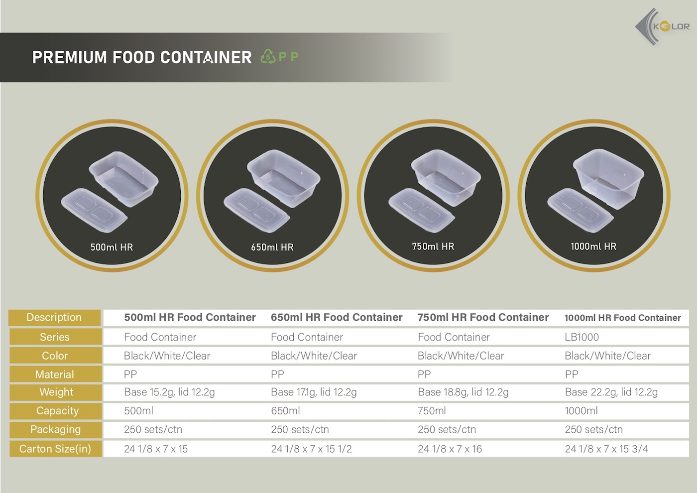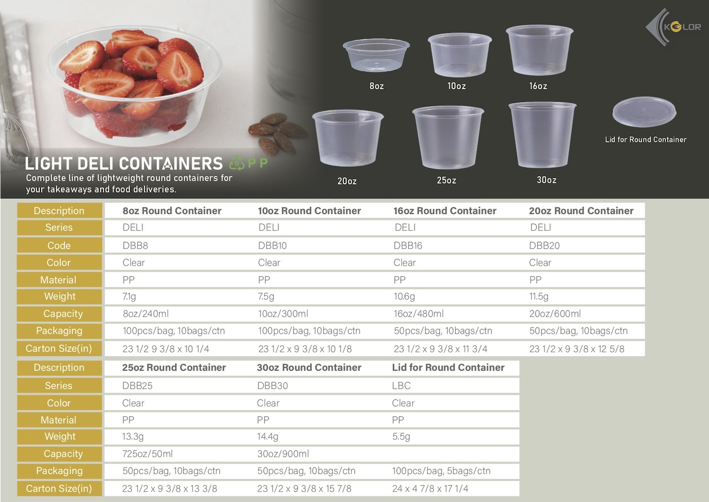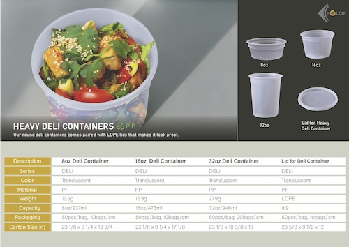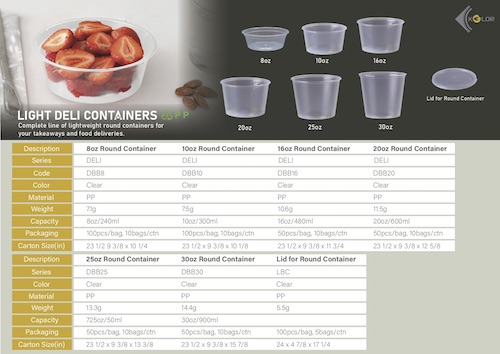 Light Deli containers / Heavy Deli containers / Bowls / Sauce containers