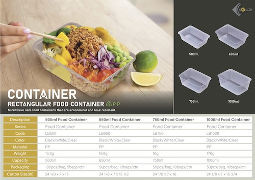 Regular 500 / 650 / 750 / 1000mL rectangular container.